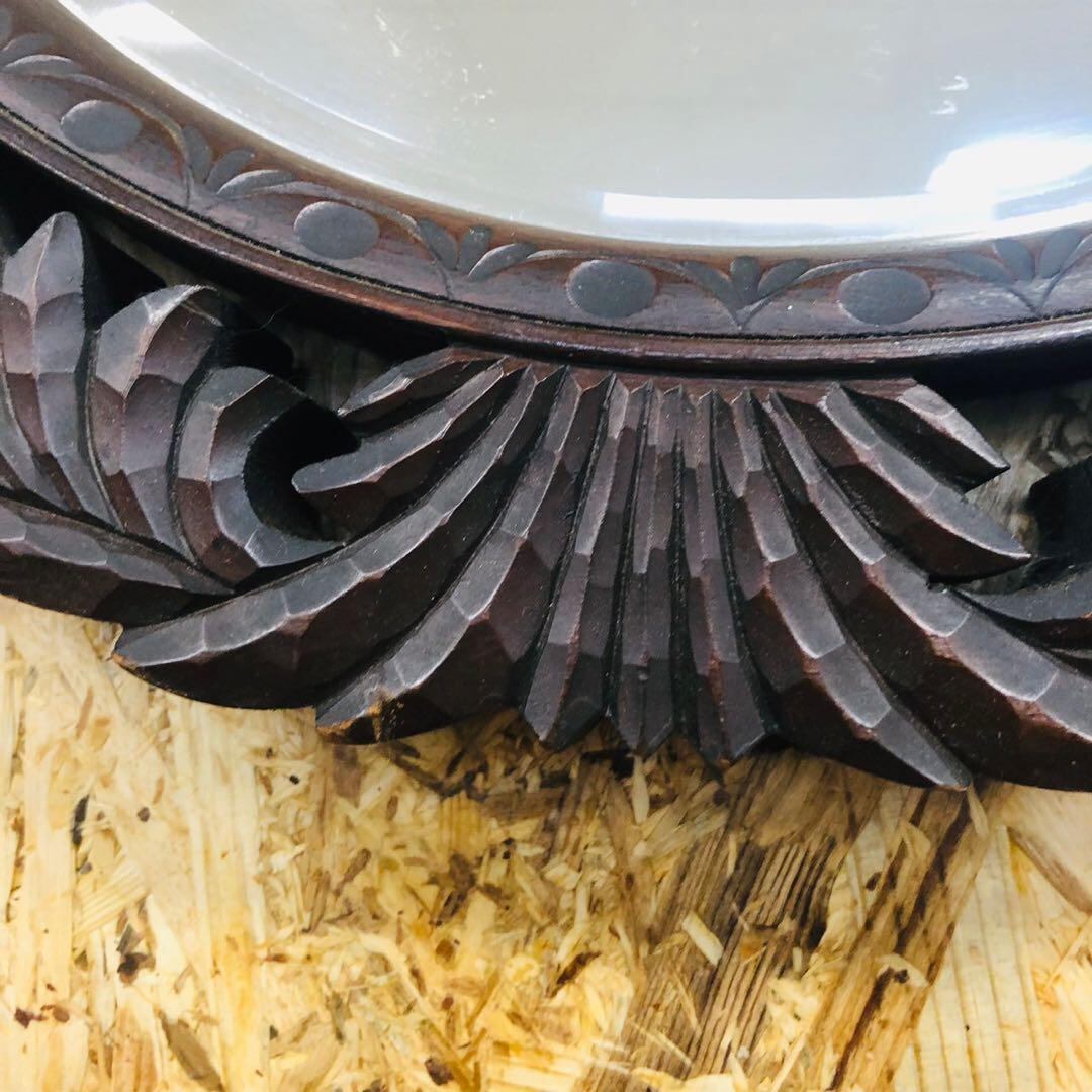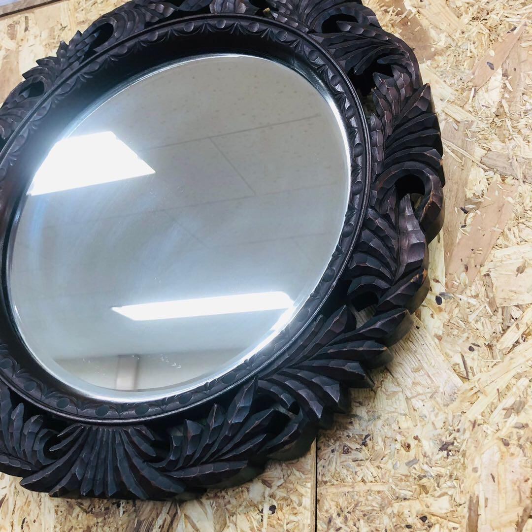 木彫り フレーム 鏡 かがみ 壁掛け鏡 ミラー レトロ 木製