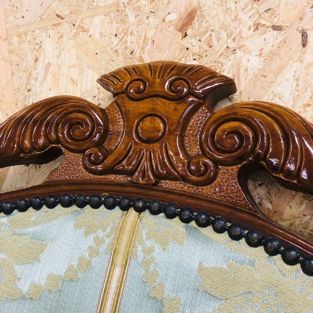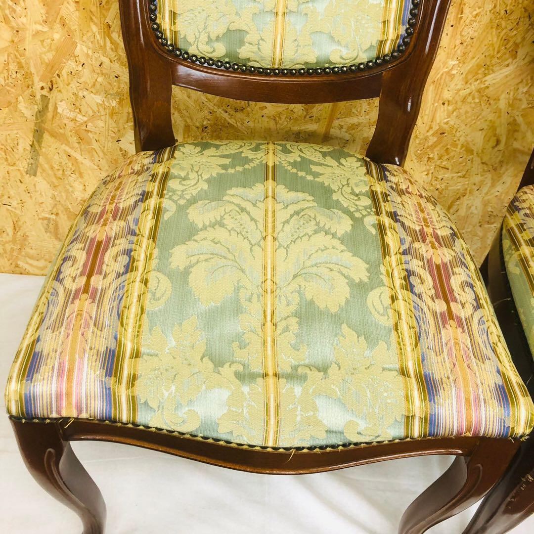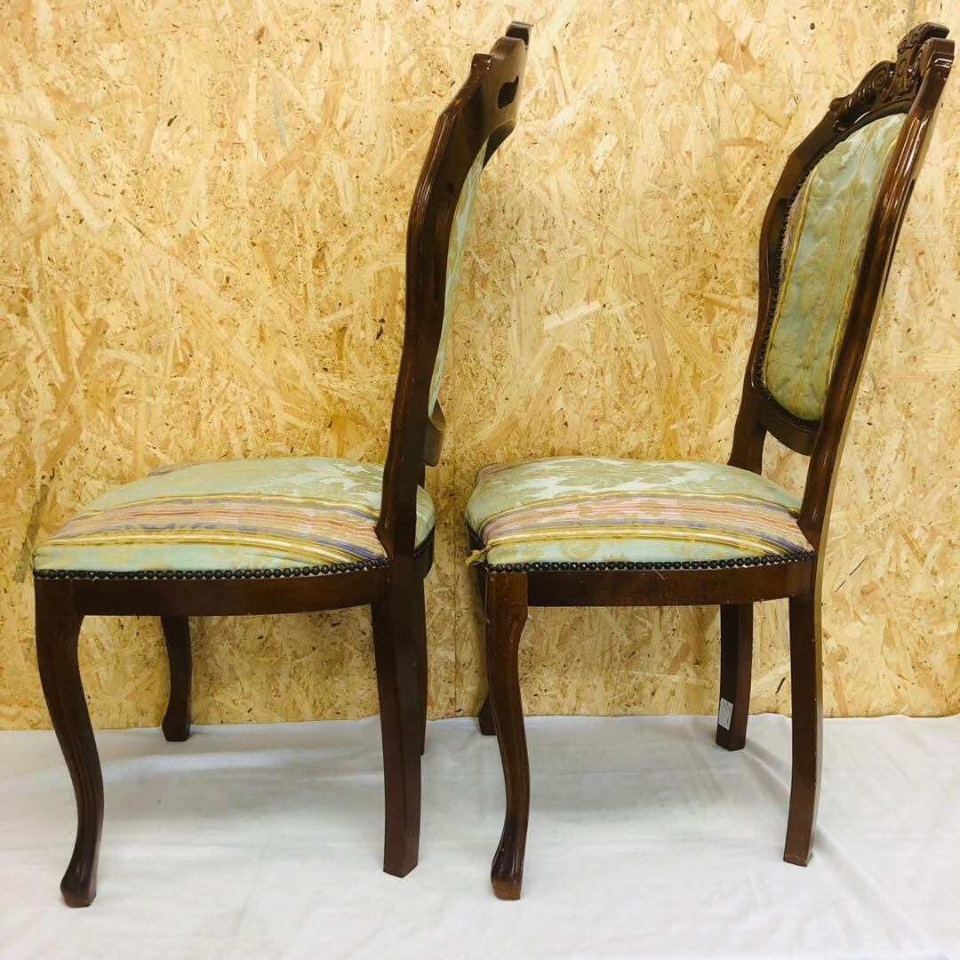 アンティークチェア イタリア 彫刻鋲打ち猫脚 2脚セット